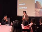 为深化产教融合实效、创新生涯教育形式,胡总监带领师生先后参观了企业产品展厅及生产车间,开启了一场兼具视觉冲击与技术深度的面料产业探索之旅,让学生直观感受专业知识在产业场景中的实际应用。在展厅参观环节,师生们围绕面料研发难点、工艺优化方向、产品创新思路等核心问题与企业负责人展开热烈研讨;在企业分享环节,企业导师设计部徐老师结合当前纺织行业技术发展趋势与市场需求,从纱线选择、组织设计、试织调试等产品设计全流程进行细致讲解,并结合企业实际项目发布定制化实践任务,引导同学们在后续课程中针对性完善设计方案,同学们也积极分享个人设计思路,在双向交流中搭建起理论知识与企业实践的坚实桥梁,助力专业设计思路与工艺实操能力双向提升。企业导师市场部严老师则依托丰富的行业实战经验与敏锐洞察力,开展主题分享活动,以设计对接市场,产品链接客户为核心,从国内外纺织市场动态、品牌定位策略、产品销售逻辑到行业环保标准等多个维度,系统拆解纺织行业市场运营与销售推广的核心逻辑,引导学生树立市场导向的专业认知,拓宽行业视野。