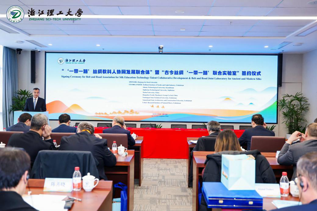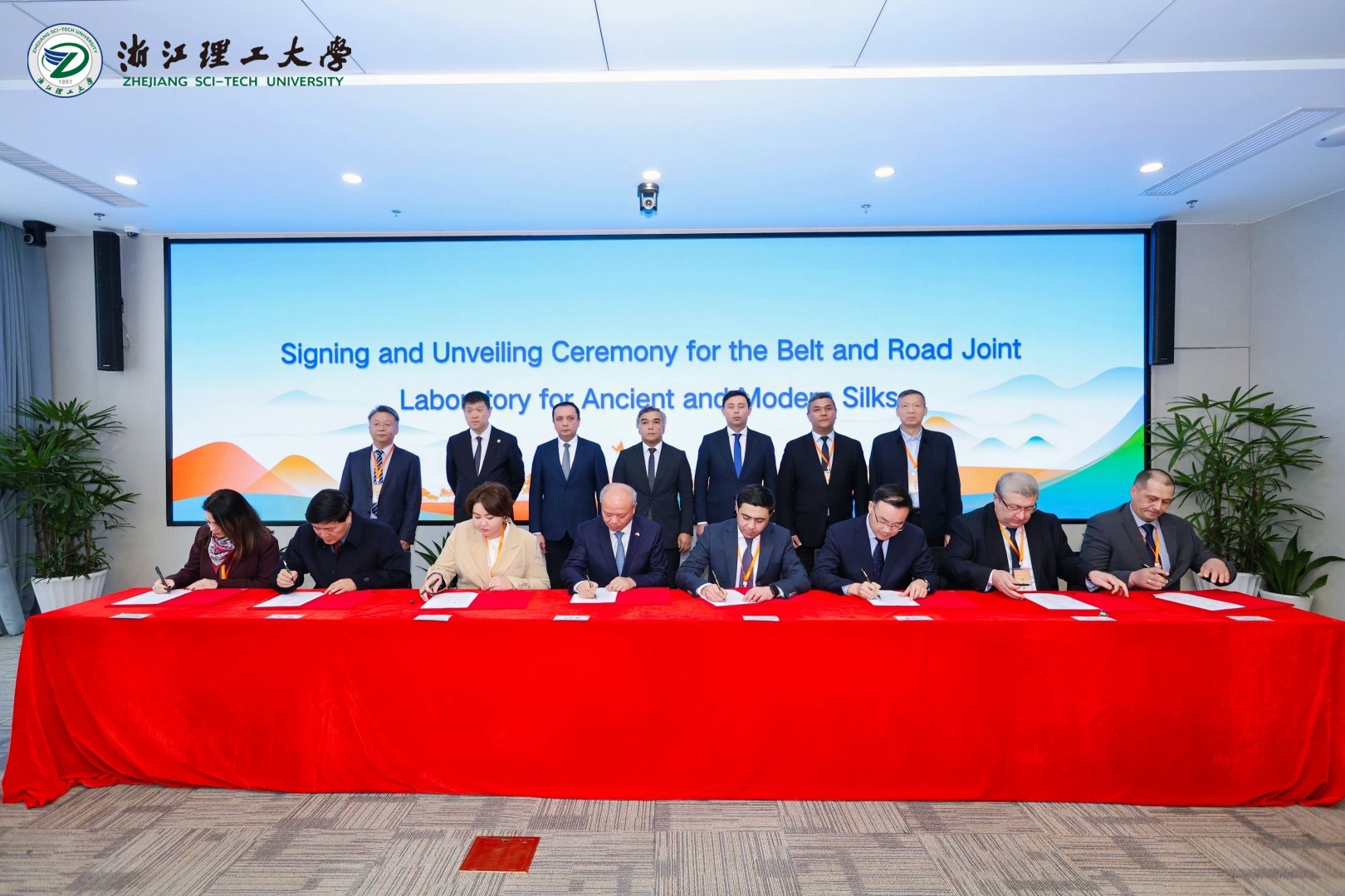 12月23日,由浙江理工大学联合乌兹别克斯坦、哈萨克斯坦的5所高校与科研机构,以及塔里木大学、杭州纺织机械集团有限公司共同发起筹建的“‘一带一路’丝绸教科人协同发展联合体”暨“古今丝绸‘一带一路’联合实验室”签约仪式在浙江理工大学举行。