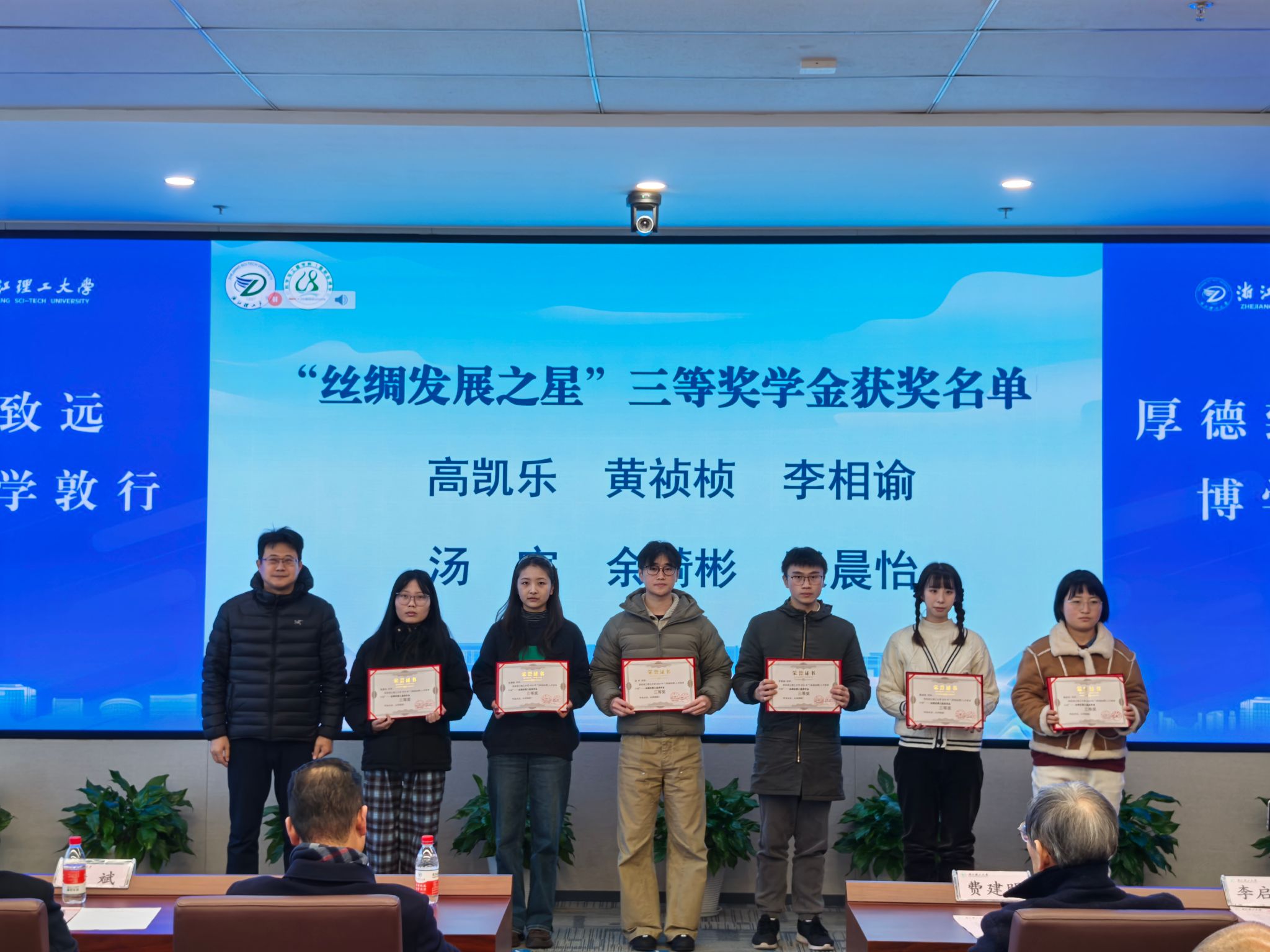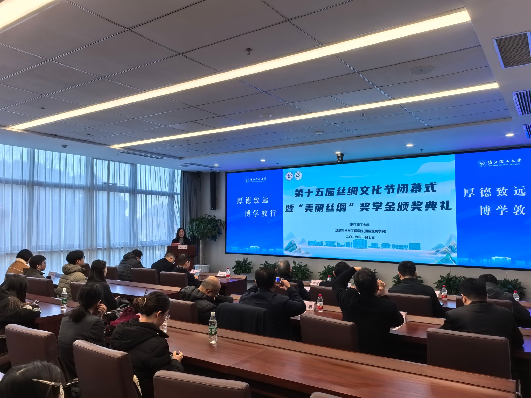 1月7日下午,纺织科学与工程学院(国际丝绸学院)第十五届丝绸文化节闭幕式暨“美丽丝绸”奖学金颁奖典礼在尚+大楼310报告厅隆重举行。