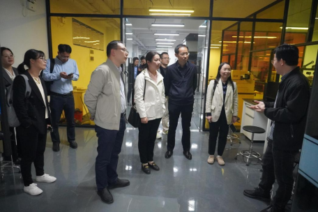 座谈结束后,与会人员集体参观了纺织新材料现代产业学院,实地了解学院在学生实践创新能力培养方面的硬件条件。