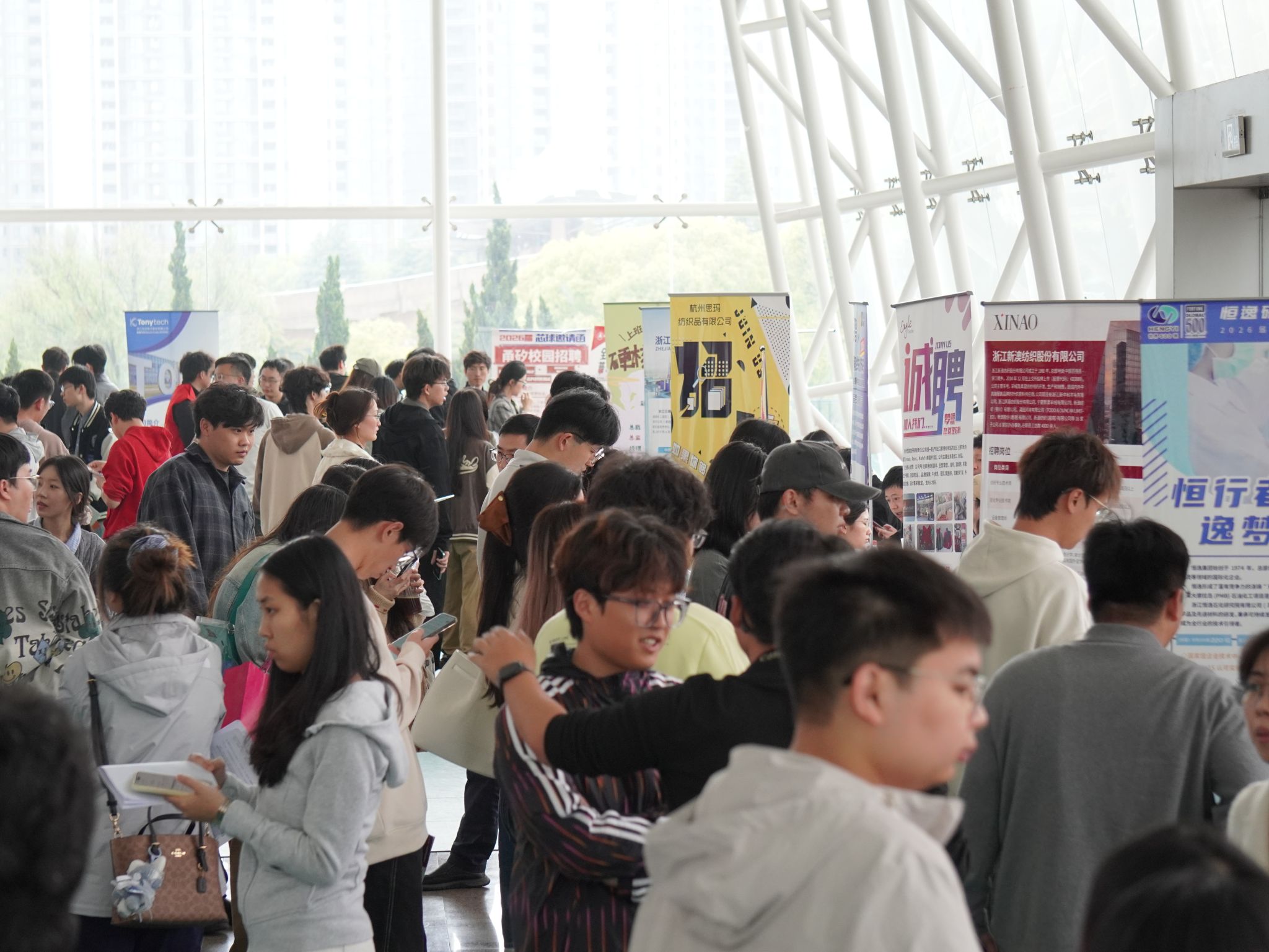 为深入贯彻落实教育部及浙江省关于高校毕业生就业工作的决策部署,抢抓春季促就业关键期,全力促进2026届毕业生高质量充分就业,4月15日下午,由纺织科学与工程学院(国际丝绸学院)、材料科学与工程学院、化学与化工学院联合主办的“‘浙理有约 共创未来’2026届毕业生春季专场暨校友企业专场招聘会”在下沙校区体育馆二楼举行。